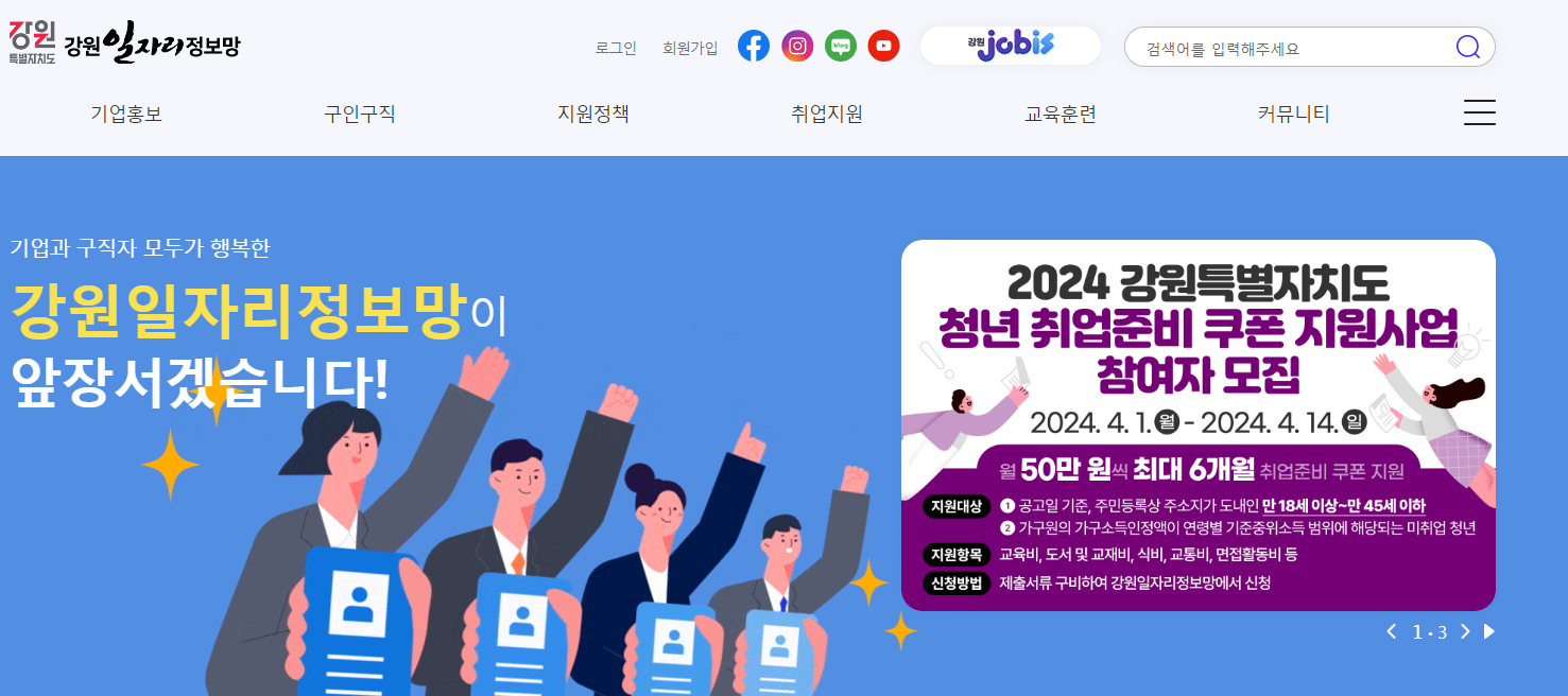 강원도일자리정보망 홈페이지에서 구직등록 후 신청하시면 됩니다