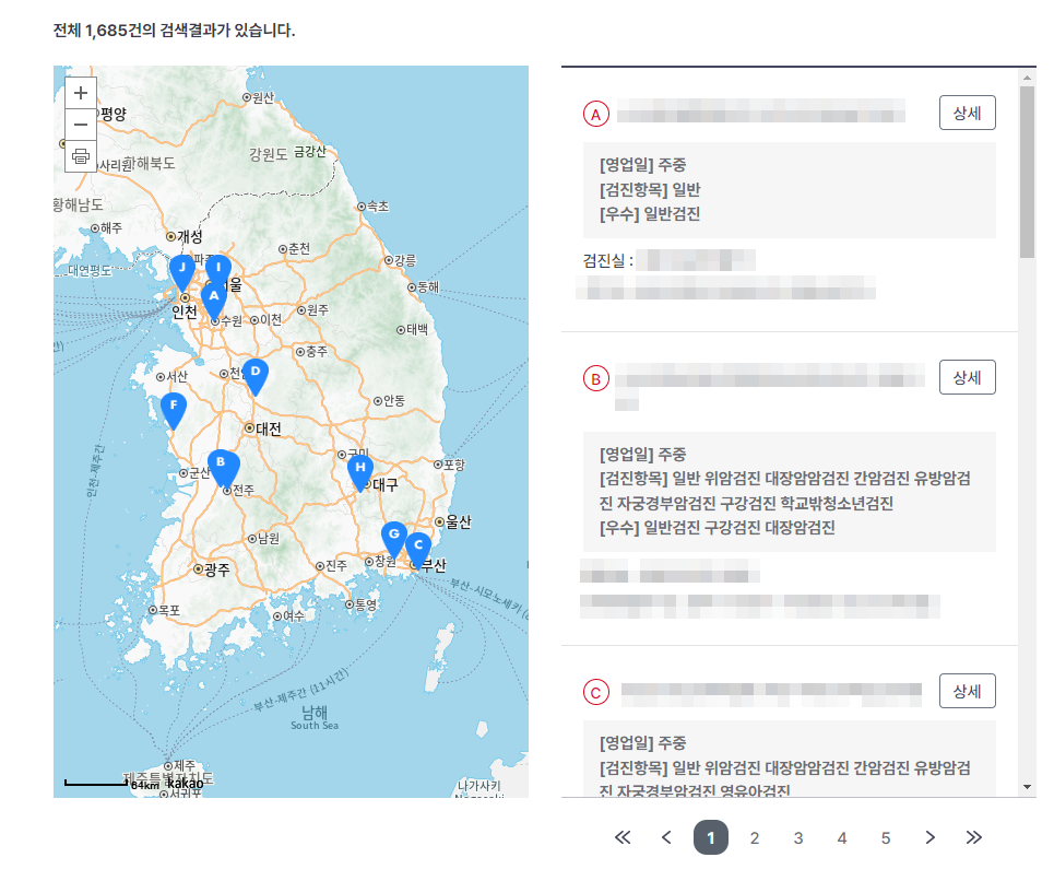 ③ 항목이 뜨면 병원을 골라서 상세를 누르시면 해당병원의 상세정보가 뜹니다