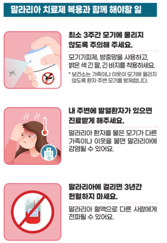 말라리아 유행 지역으로 여행을 계획 중인 경우, 항말라리아 약물을 복용할 수 있습니다. 약물 복용 기간은 약물에 따라 다르지만, 일반적으로 여행 전, 여행 중, 그리고 여행 후 일정 기간 동안 복용해야 합니다.