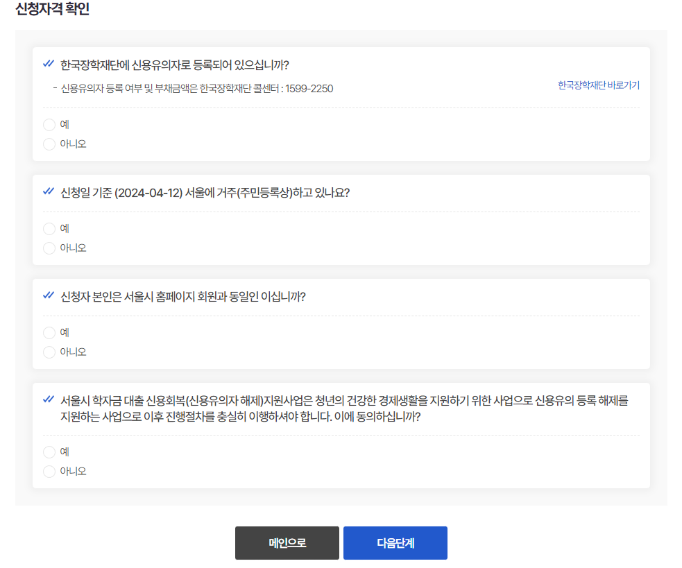 서울시에서 학자금대출로 인해 신용 유의자가 된 청년들을 대상으로 학자금 대출 신용회복 지원사업을 실시하고 있습니다.