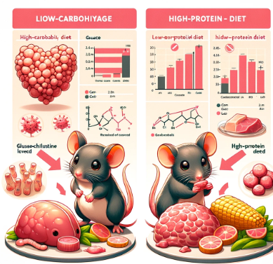 저탄수화물, 고단백질 식단을 섭취한 쥐는 고탄수화물, 저단백질 식단을 섭취한 쥐에 비해 종양 성장이 더 느린 것으로 나타났습니다.