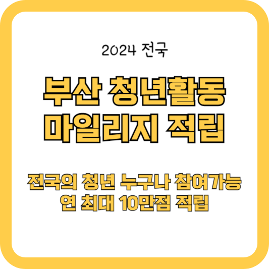 (전국의 청년)부산 청년활동 마일리지 연10만점 적립가능