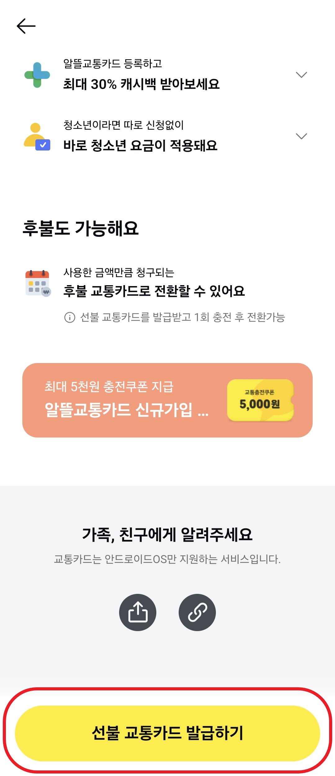 ④ 맨 아래 선불교통카드 발급하기를 눌러주세요