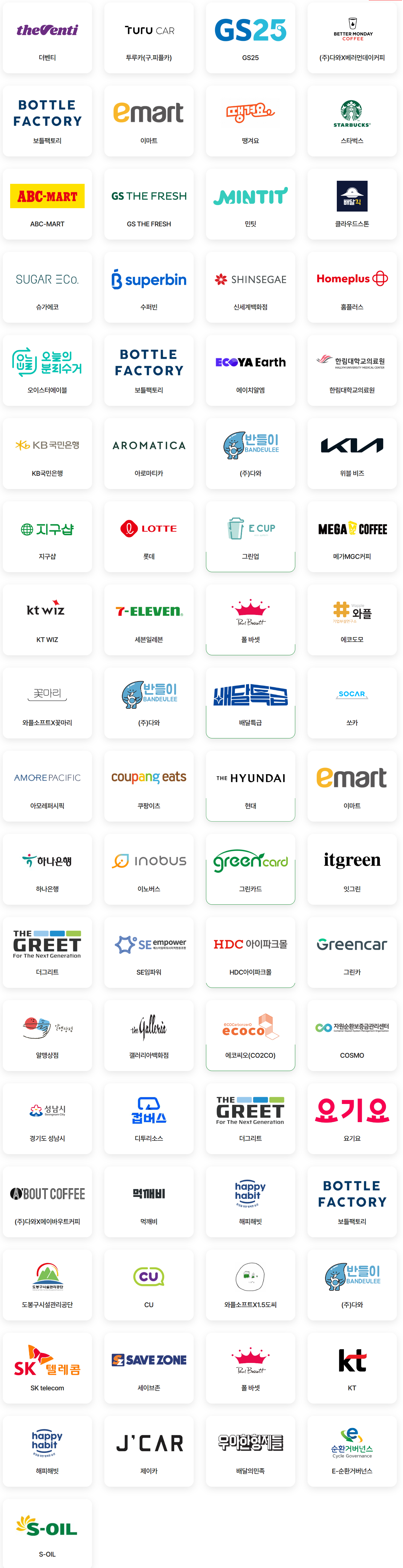탄소중립 포인트 녹색생활실천에 참여하는 기업들입니다