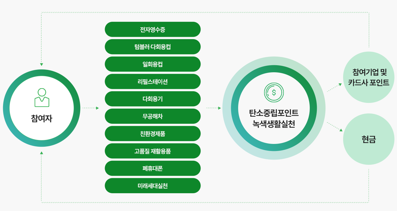 국민들의 탄소중립 생활 실천문화를 확산하기 위해 다양한 민간기업에서 친환경활동 이용 시 이용실적에 따라 인센티브를 지원한다고 합니다.