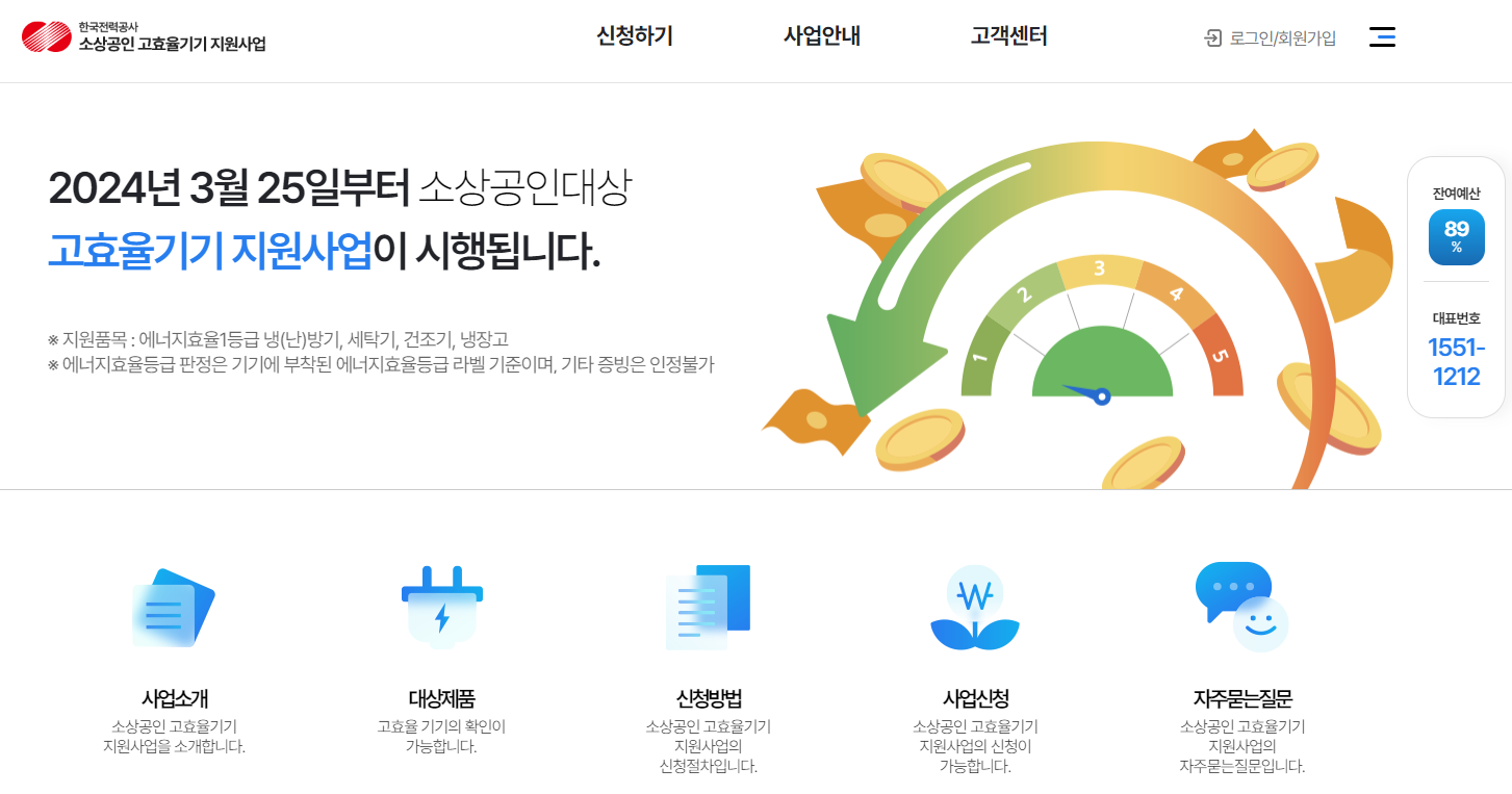 한전 소상공인 고효율기기 지원사업 메뉴에서 신청가능합니다