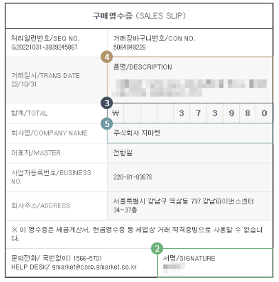 Q. 거래내역서 혹은 영수증에 기재된 정보의 일부가 별표로 표시된 경우 유효한가요?