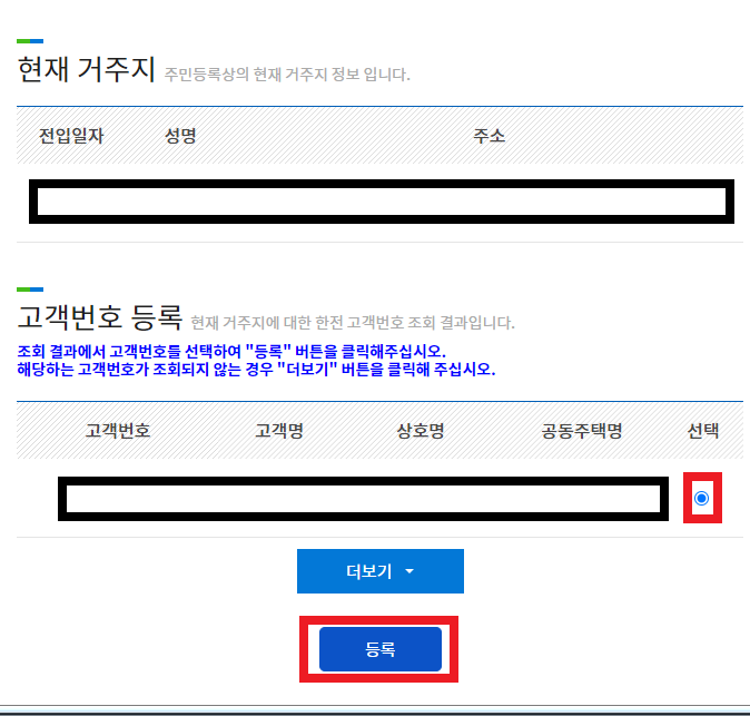 고객번호를 선택하여 등록버튼을 눌러주세요