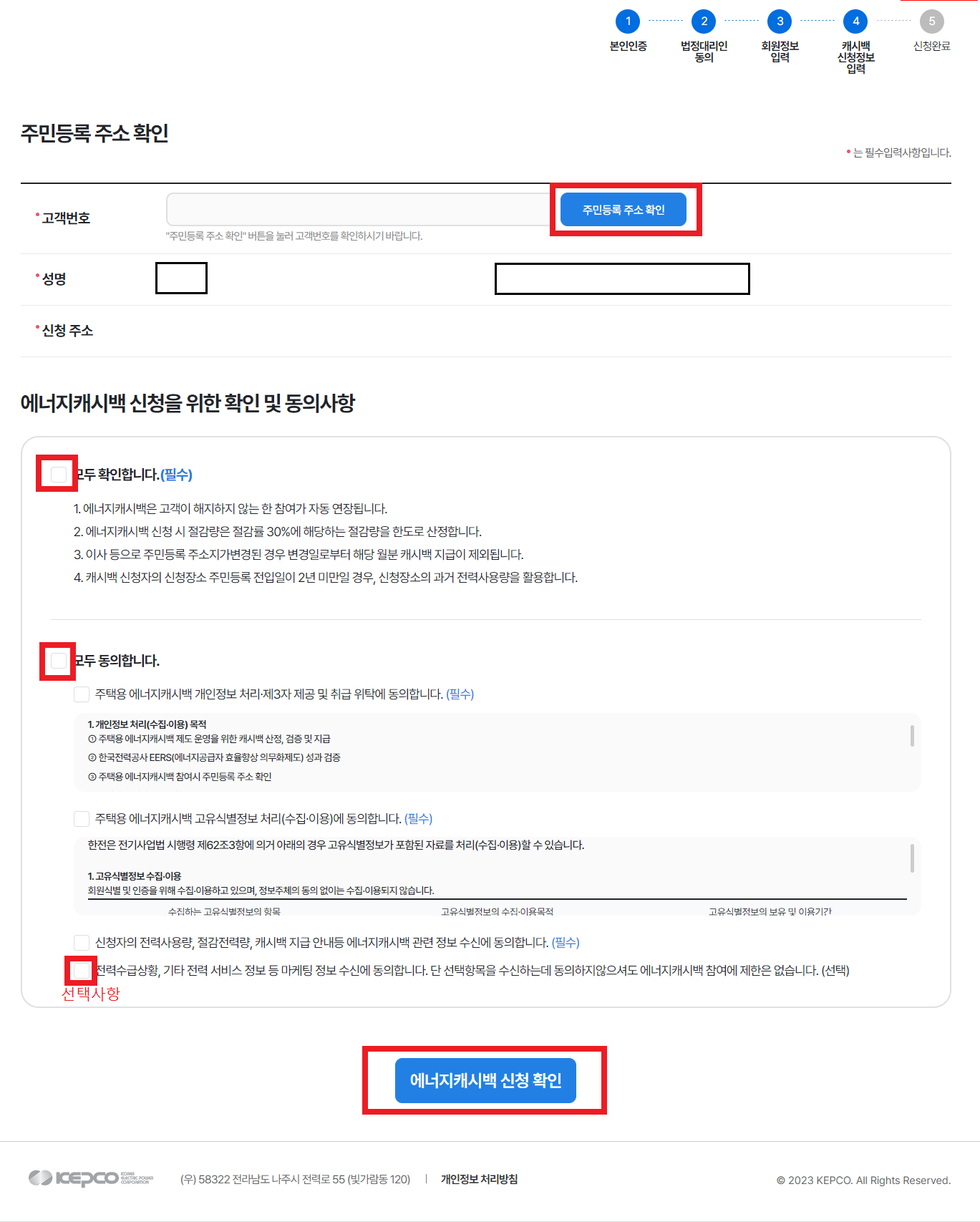 주민등록주소확인을 누른 후 동의사항에 동의해 주세요. 맨 마지막 체크사항은 선택사항입니다.