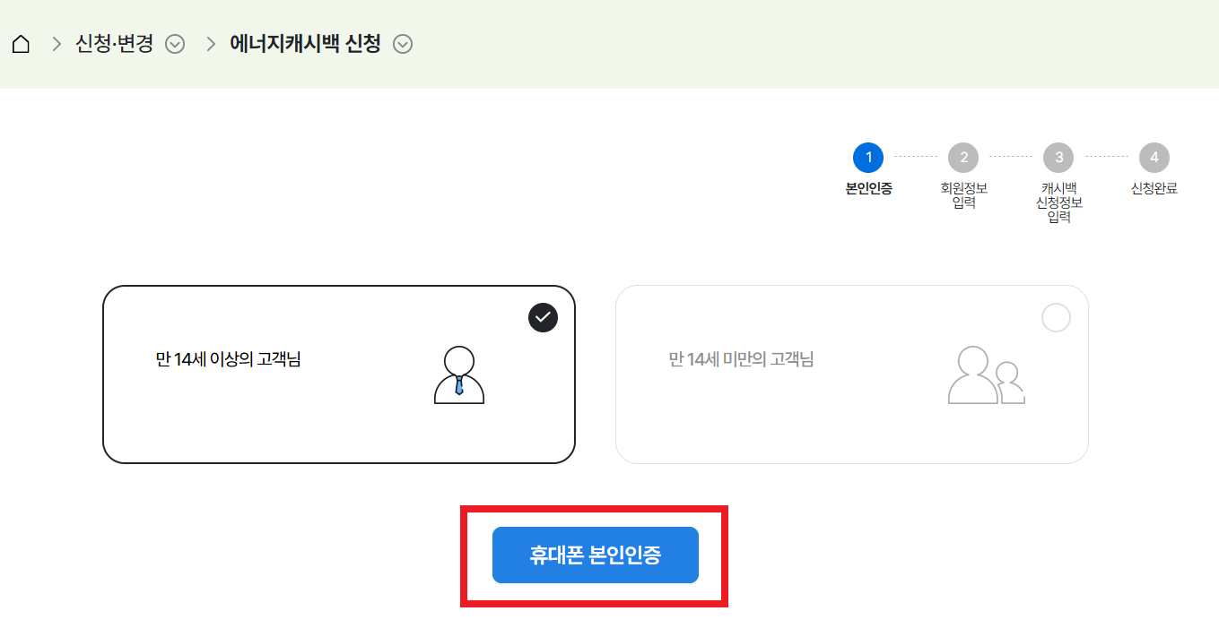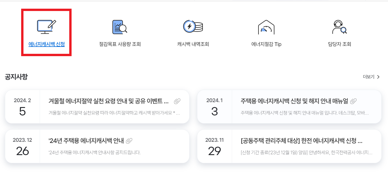 회원가입이나 로그인 후 에너지캐시백 신청을 누르세요