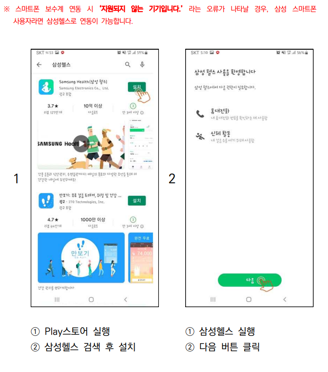 국민생활실천지원금제 삼성헬스 연동법