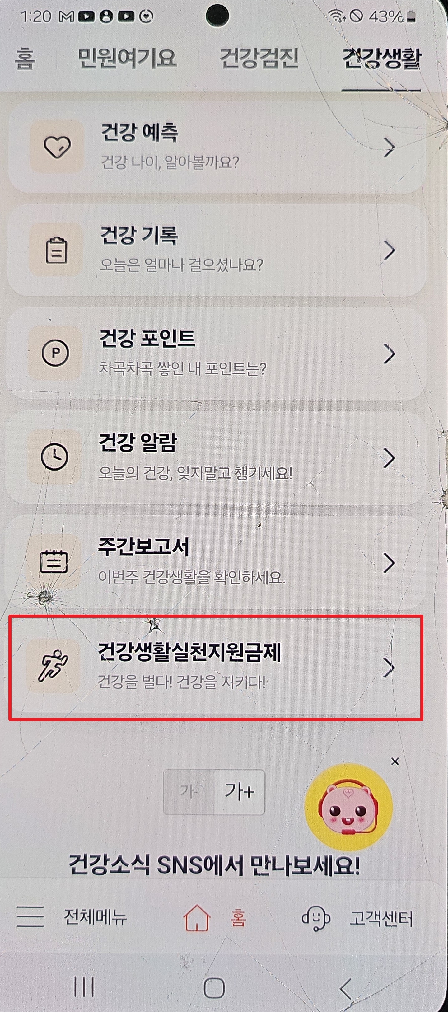 홈페이지에서 로그인을 하신 다음 건강 iN 메뉴에서 → 건강생활실천지원금제를 눌러주세요