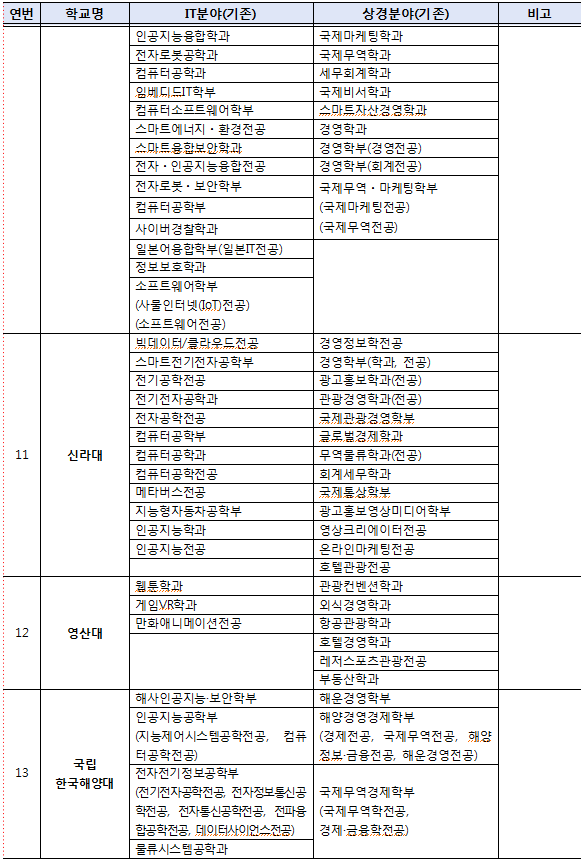 ② 계약학과 및 산업체위탁학과, 평생교육원, 학사학위전공심화, 대학원 소속