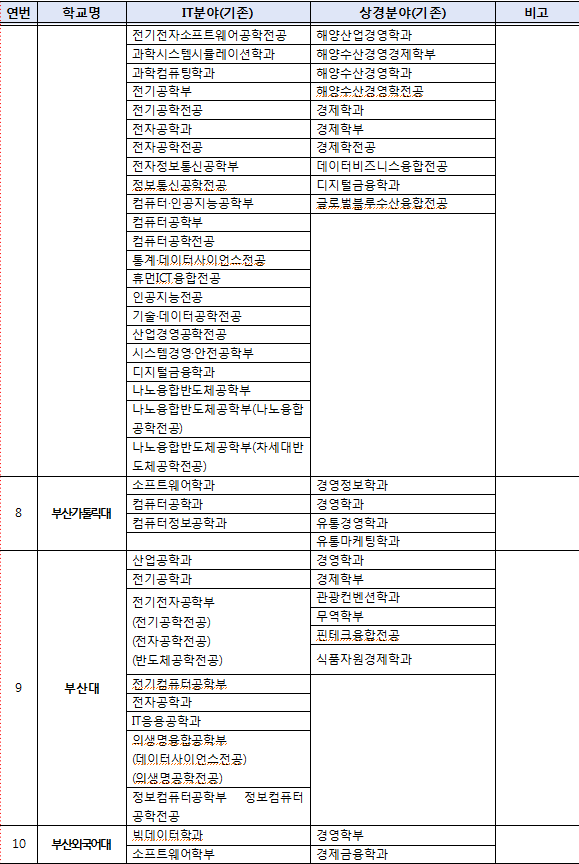 ① 2024 상반기 부산지역인재 장학금 지원가능학과에 기재된 학교와 학과에 소속된 자