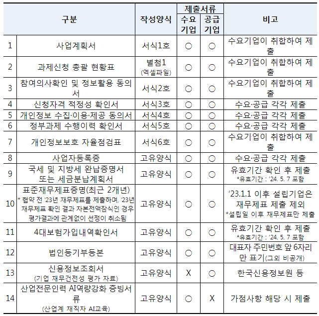 (단 [별첨1] 과제신청 총괄 현황표는 엑셀파일로 제출