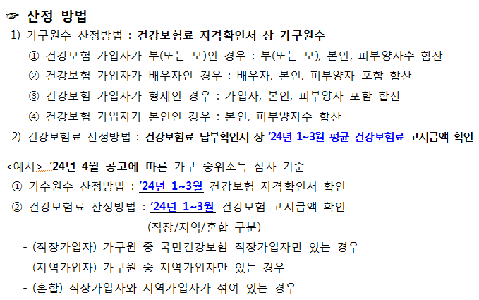 심사기준 2024년 1~3월 평균 "건강보험료 고지 금액"으로 심사합니다