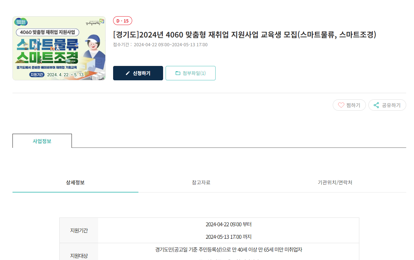 경기도 일자리 재단에서 만 40세 이상 만 65세 미만의 경기도민 베이비부머세대를 위해